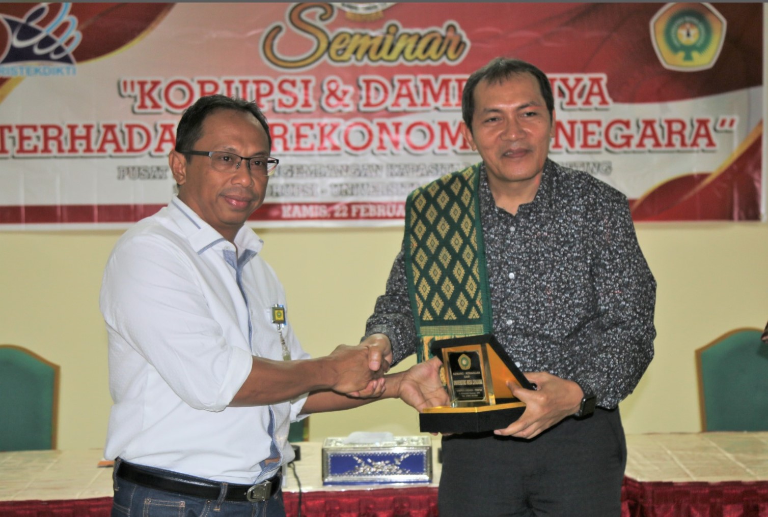 “Misalnya ada 10 orang disuruh kerja paper, yang lainnya kerja lalu yang lain datang bawa pisang goreng, kemudian meminta teman-teman menulis namanya dibagian paling atas kover paper itu. Ini juga sebagai bentuk suap bahkan korupsi. Yang kecil-kecil ini akan menjadi besar jika kedepan sudah menjadi pejabat pemerintahan,” bebernya. Ia meminta agar mahasiswa mencegah adanya praktik-praktik perkuliahan seperti itu. Dalam melaksanakan upaya pencegahan korupsi, paparnya, tidak saja mengetahui secara teori, namun yang terpenting adalah tataran praktis. Soal integritas, jelas dia, seseorang harus mengikuti jalan Tuhan, yaitu jujur, benar, adil, peduli, mandiri, disiplin, tanggungjawab, kerja keras, sederhana, berani dan adil. Ia menantang, mahasiswa harus memiliki integritas agar ke depan, sebagian dari mahasiswa bisa menjadi pimpinan KPK. “Jika mahasiswa, sebagai generasi penerus tidak memiliki integritas, maka kemungkinan bangsa ini akan bubar,” tegasnya.