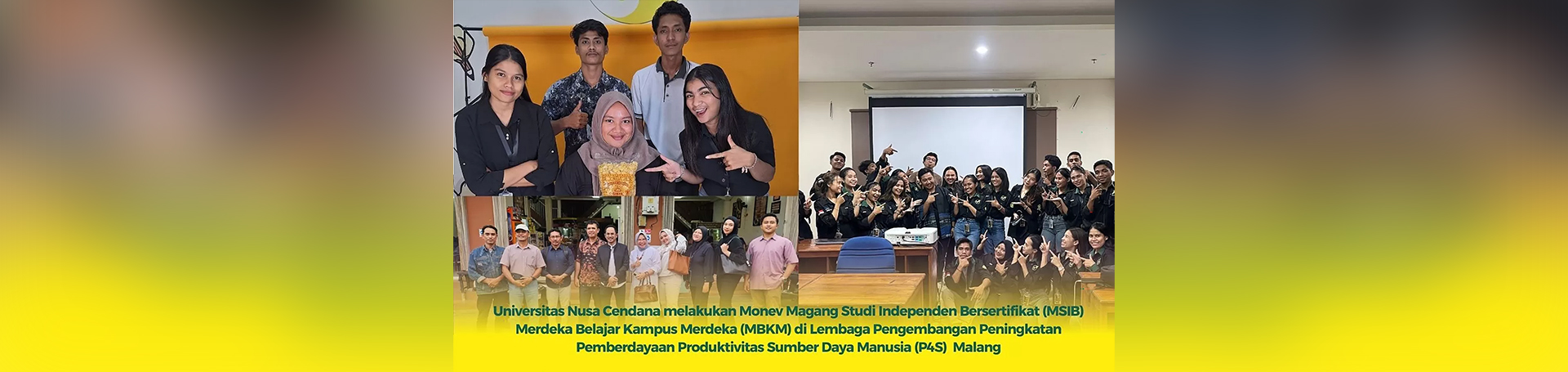 Pimpinan Universitas Nusa Cendana (Undana) Kupang baru-baru ini menggelar kegiatan monitoring dan evaluasi (monev) terhadap 25 mahasiswa yang sedang mengikuti program Magang dan Studi Independen Bersertifikat (MSIB) Merdeka Belajar Kampus Merdeka (MBKM) di Lembaga Pengembangan Peningkatan Pemberdayaan Produktivitas Sumber Daya Manusia (P4S) di Kota Malang.