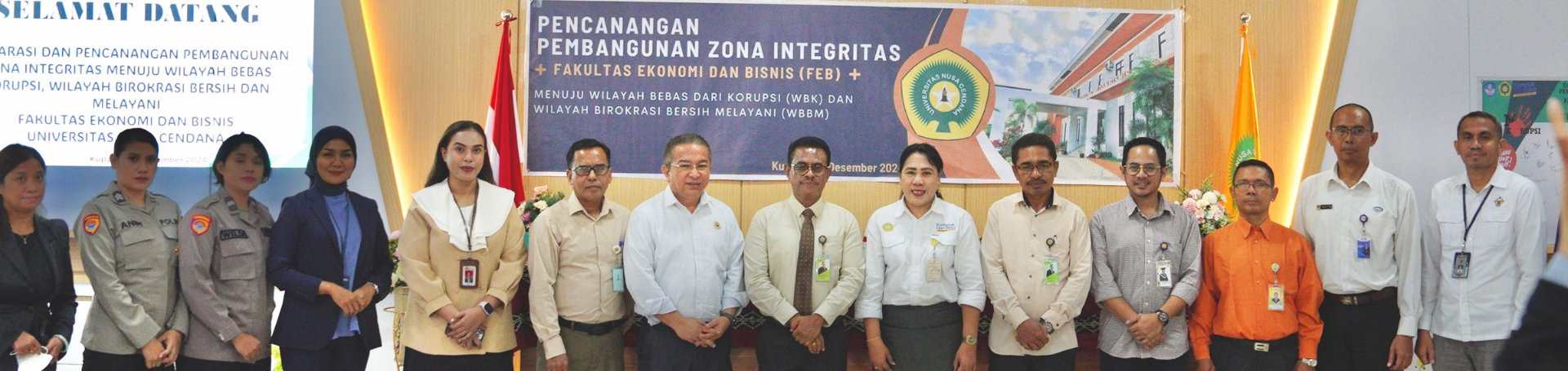 Zona integritas merupakan suatu kredit yang diberikan kepada suatu instansi pemerintah yang berhasil melakukan reformasi birokrasi dalam rangka mewujudkan pelayanan publik yang bersih, transparan, dan bebas korupsi. FEB merupakan salah satu unit kerja yang ada di Undana yang berhasil menerapkan hal tersebut.