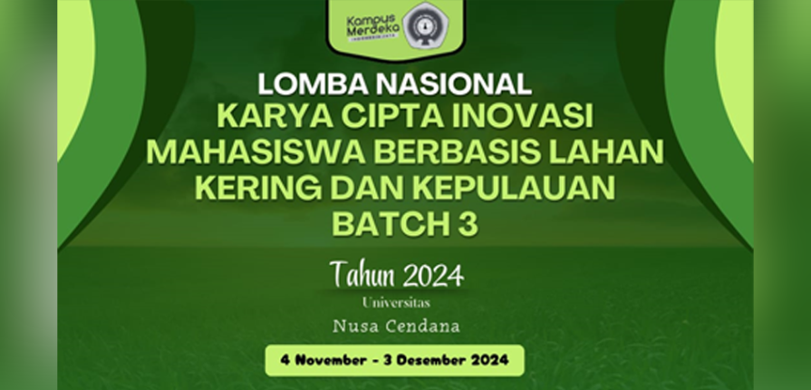 Universitas Nusa Cendana (UNDANA) akan menyelenggarakan Lomba Nasional Karya Cipta Inovasi Mahasiswa Berbasis Lahan Kering dan Kepulauan Batch 3 pada …