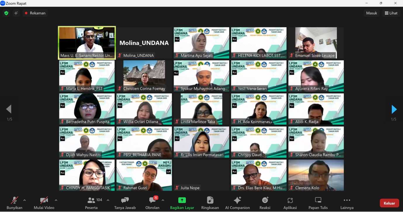 Kegiatan PEKERTI yang dilaksanakan secara virtual (daring) melalui zoom meeting tersebut, dijadwalkan berlangsung tanggal 26 Februari –  6 Maret 2025. Puluhan dosen baik dari internal dan eksternal Undana mengikuti PEKERTI ini guna meningkatkan kompetensi pedagogik, kepribadian, profesional, dan sosial.