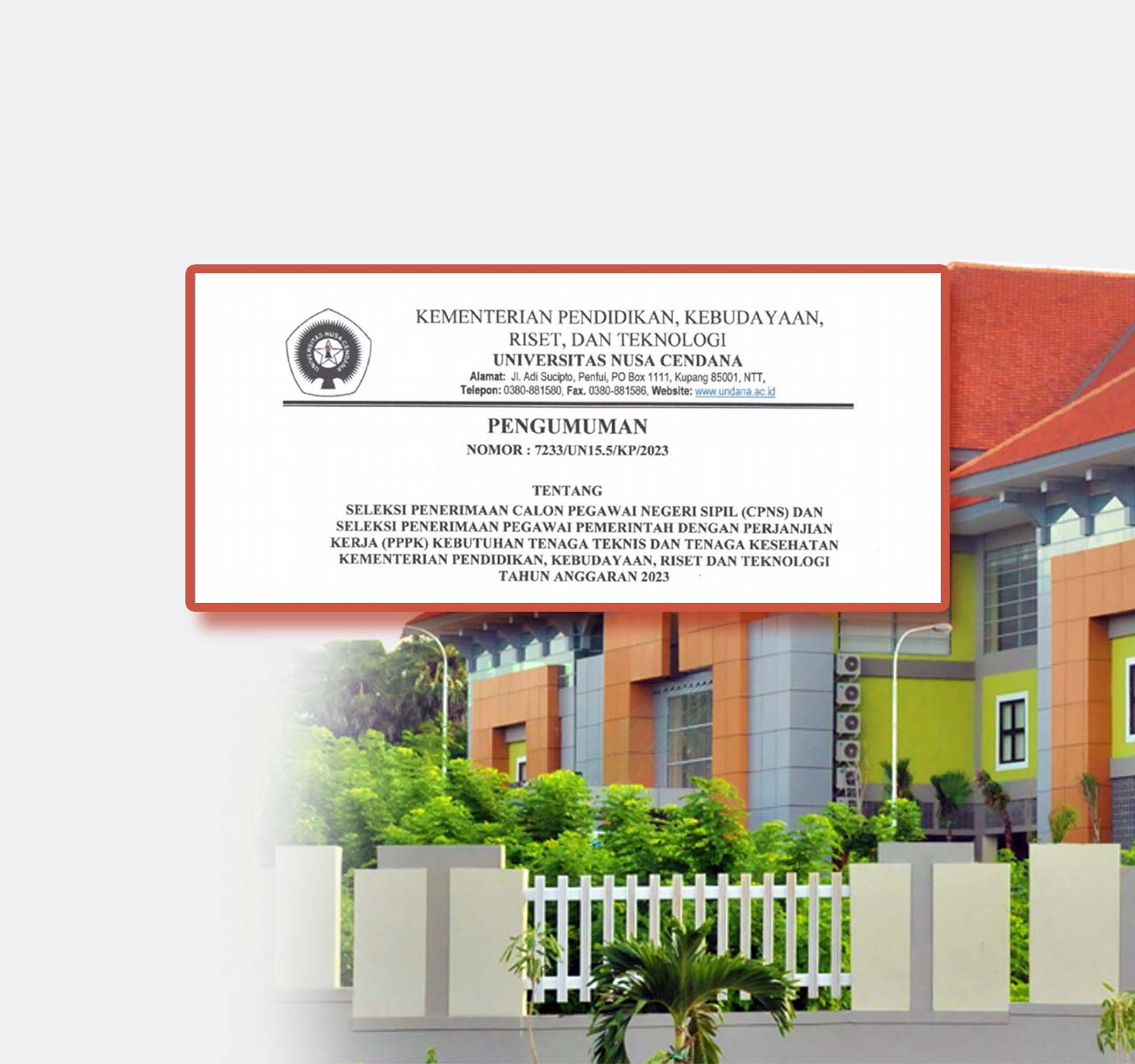 Prospective students at Nusa Cendana University can register through 3 Undana entrance routes, namely: SNMPTN (Achievement-based National Entrance Test), SBMPTN (Joint Selection State University Entrance Test) and Mandiri.