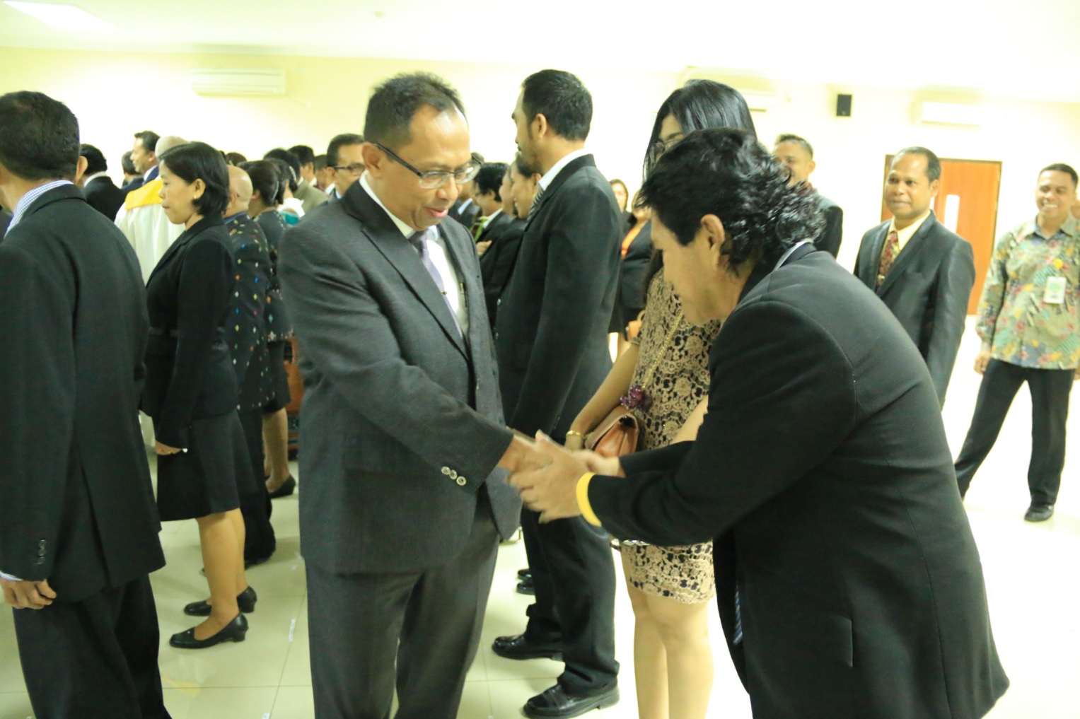 “Jadi pada kesempatan ini saya minta saudara, baik yang dilantik menjadi pejabat sebagai tugas tambahan dosen, dan pimpinan tenaga kependidikan agar dapat melaksanakan semua tanggung jawab dengan sebaik-baiknya sesuai dengan sumpah yang telah saudara-saudara ucapkan dihadapan Tuhan yang juga didengar oleh manusia bahkan semua undangan yang hadir pada hari ini,” katanya.