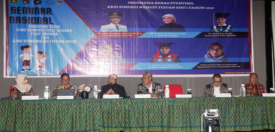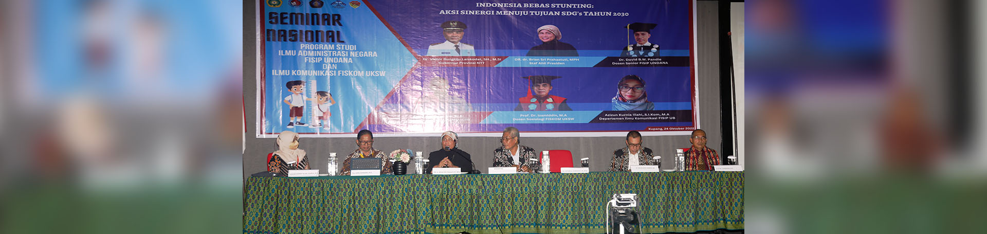 Fakultas Ilmu Sosoal dan Politik (FISIP) Undana dan Fakultas Ilmu Sosial dan Komunikasi (FIKOM) Universitas Kristen Satya Wacana (UKSW) menggelar seminar nasional dan Call for Paper: Indonesia Bebas Stunting, Aksi Sinergi Menuju Tujuan SDG’s Tahun 2030. Kegiatan itu dibuka WR IV Undana, Dr. Jefri S. Bale, ST., M.Eng di Hotel Neo, Kupang, Senin (24/10/2022).