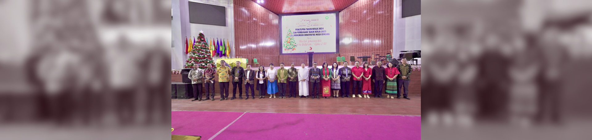 KUPANG – Pada penghujung tahun 2024, tepatnya pada Senin (30/12/24), rektor beserta seluruh civitas akademika Universitas Nusa Cendana (UNDANA) dengan penuh syukur merayakan Natal Bersama dalam rangka Penutupan Tahun Kerja 2024 dan Pembukaan Tahun Kerja 2025 di Gedung Grha Cendana. Ibadah perayaan ini diselenggarakan secara oikumene dengan tema “Marilah kita pergi ke Betlehem” (Lukas 2:15) dipimpin oleh 2 (dua) rohaniwan, Pdt. Semuel B. Pandie, S.Th dan Romo Rudi Tjung Lake PR.