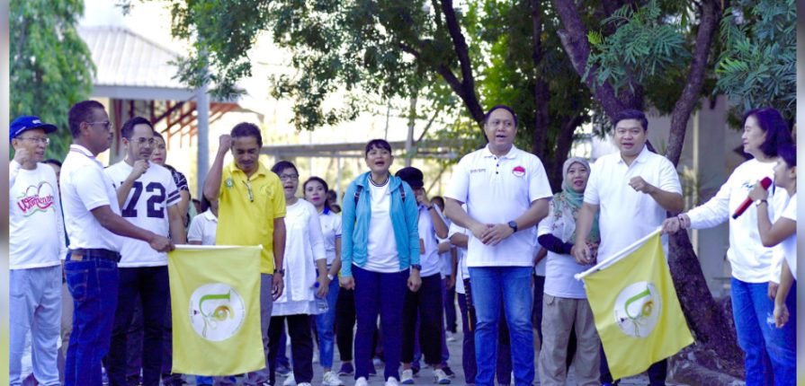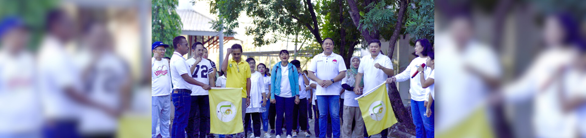 Selanjutnya kegiatan jalan sehat diawali dengan pengangkatan bendera start oleh Rektor bersama Ibu Ketua Dharma Wanita Persatuan UNDANA.
