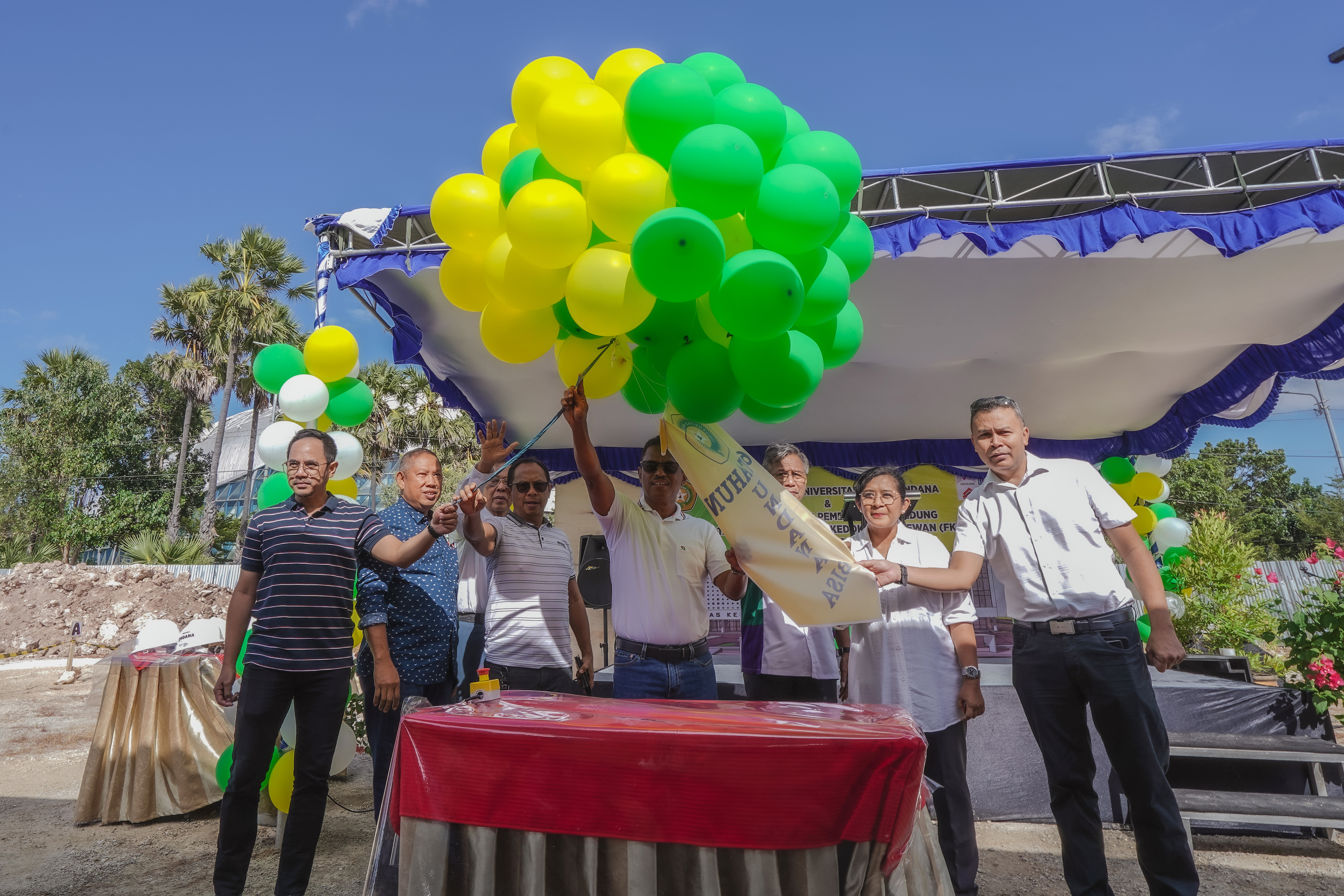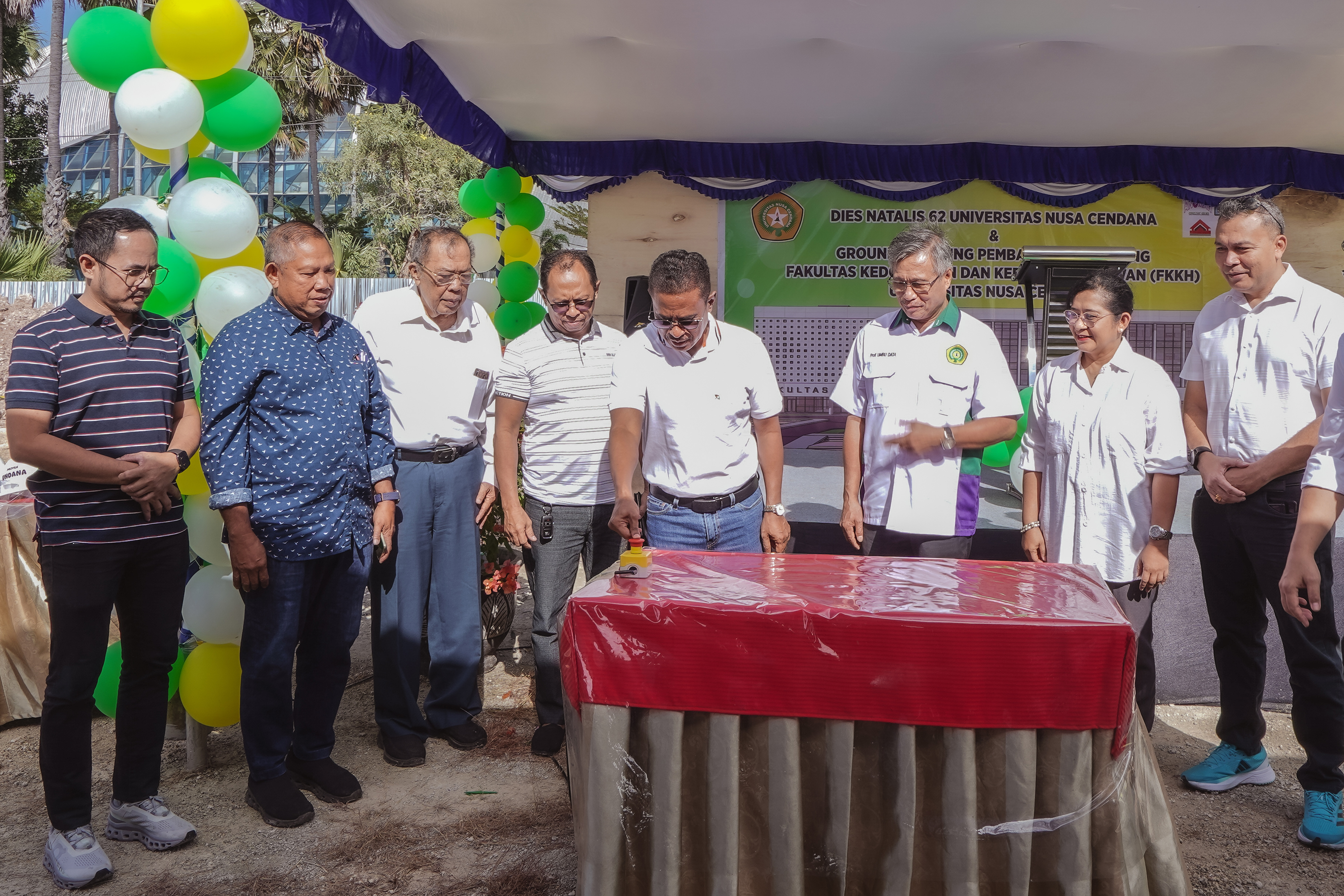 Rektor Universitas Nusa Cendana (Undana) Prof. Dr. drh. Maxs U. E. Sanam, M.Sc meresmikan dimulainya pembangunan Gedung Perkuliahan Fakultas Kedokteran dan Kedokteran Hewan (FKKH), sekaligus launching hari jadi Universitas Nusa Cendana ke-62, Sabtu (8/6/2024) didampingi oleh Ketua Senat Undana, Prof. Ir. Fredrik L. Benu, M. Si., Ph. D, Dekan FKKH Undana Dr. dr. Christina Olly Lada, M.Gizi, dan Ketua Senat FKKH Prof. Ir. Frans Umbu Datta, M.App.Sc,Ph.D.