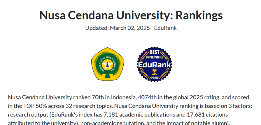 KUPANG – Universitas Nusa Cendana (Undana) kembali mencatatkan prestasi membanggakan di kancah nasional dan internasional. Lembaga pemeringkatan universitas terkemuka, EduRank …