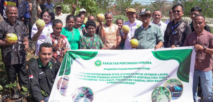 Kupang-Tim Pengabdian Kepada Masyarakat (PKM) Undana yang terdiri dari Dosen, Teknisi, Mahasiswa Fakultas Pertanian dan Lahan Kering Kepulauan melakukan sosialisasi Implementasi System Irigasi Tetes Otomatis kepada kelompok tani fenun, Rabu 7 Agustus 2024 yang berlokasi di Laboratorium Lahan Kering Kepulauan (LLKK) Universitas Nusa Cendana. Kegiatan ini bertujuan untuk memperkenalkan cara kerja sistem irigasi tetes otomatis yang dikembangkan oleh tim PKM dalam Upaya mengoptimalkan lahan kering di musim kemarau dan meningkatkan produktivitas budidaya